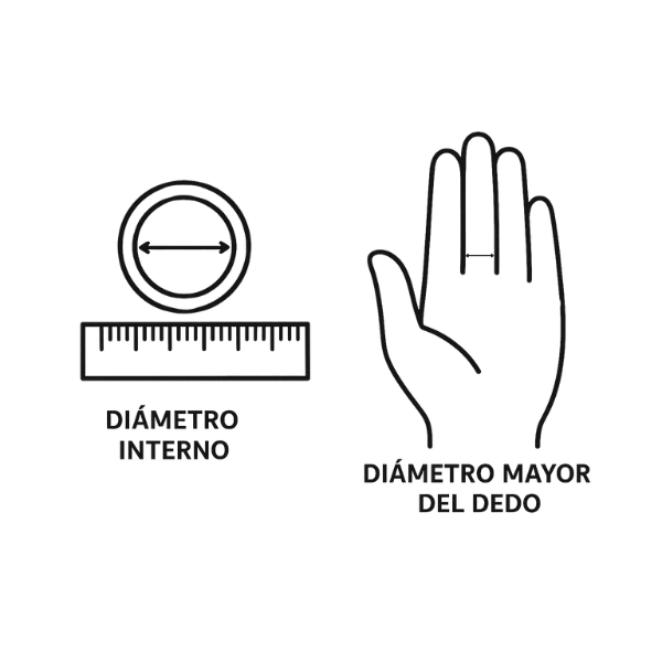Medí con una regla el diámetro interno de algun anillo que ya tengas o el diámetro mayor de tu dedo en milímetros. Ese número es el talle que debés elegir.
